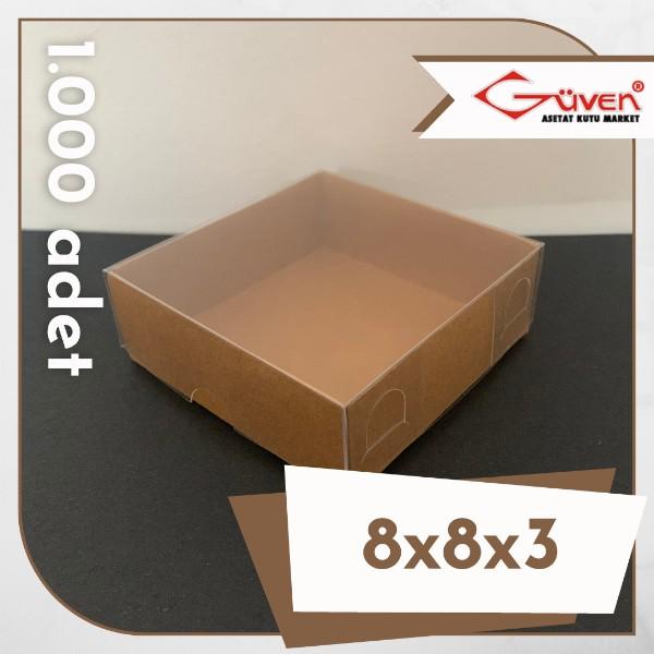 [1.000 adet] 8x8x3 Altı Kraft Karton Üstü Asetat Kutu