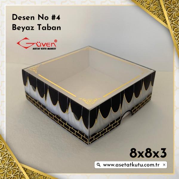 [Desen #4] 8x8x3 Altı Beyaz Karton, Üstü Kabe Temalı Asetat Kutu