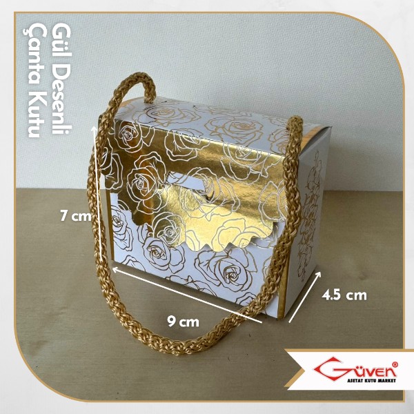 [İp Saplı] 7x9x4.5 Gül Desenli Çanta Kutu