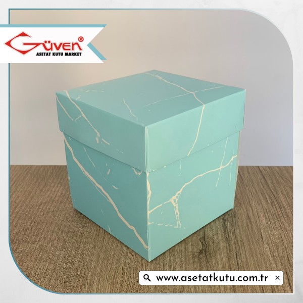 10x10x10 Mavi Mermer Desenli Komple Karton Kutu