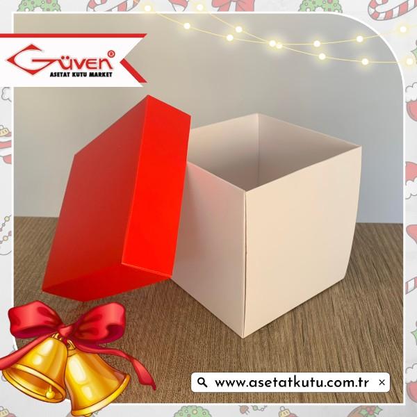 10x10x10 Tabanı Beyaz, Kapağı Kırmızı Karton Kutu