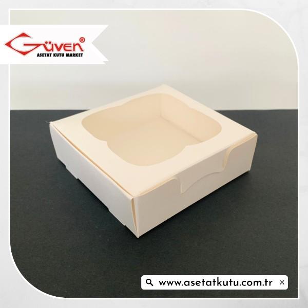 10x10x3 Beyaz Selefon Pencereli Karton Kutu