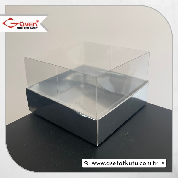 10x10x6 Altı Gümüş Metalize Karton Üstü Asetat Kutu