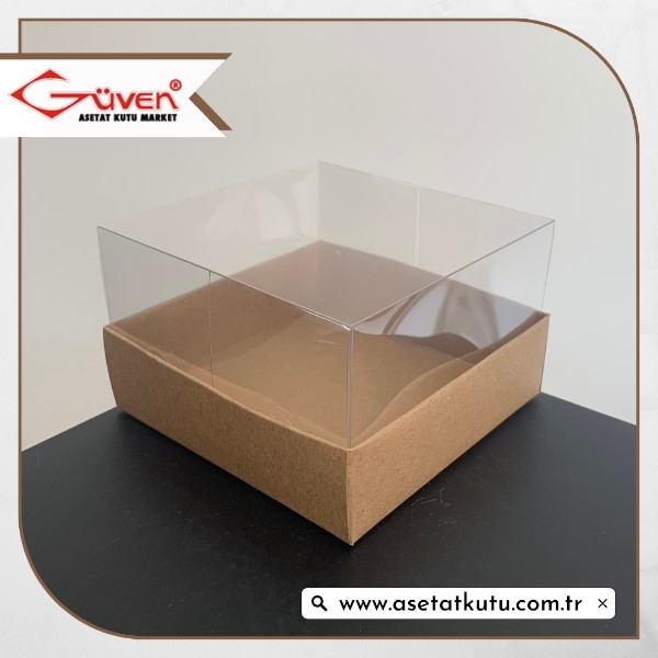 10x10x6 Altı Kraft Karton Üstü Asetat Kutu