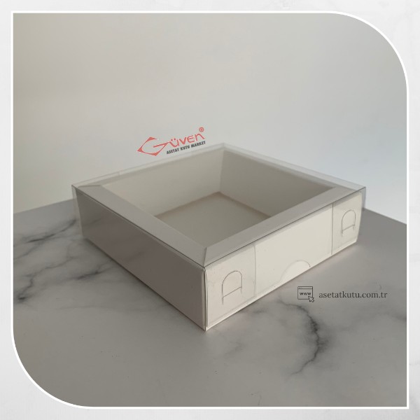 [Duvarlı Kutu] 11x11x3 Altı Beyaz Karton Üstü Asetat Kutu