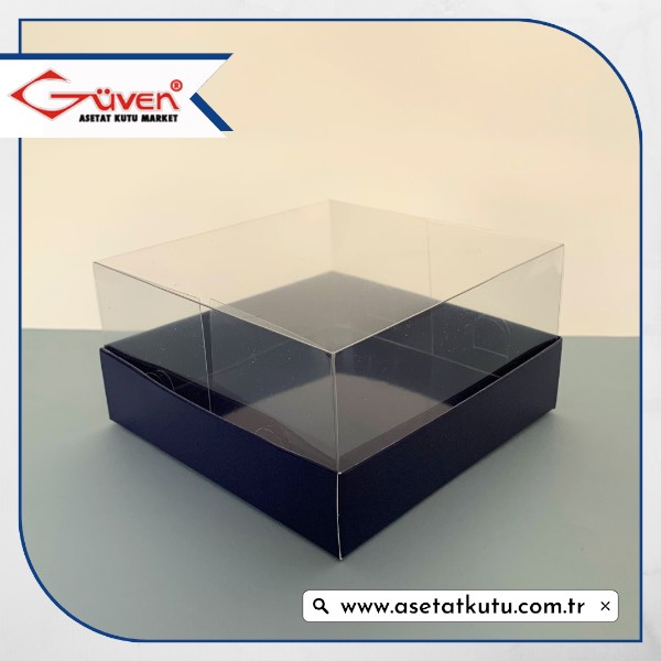 12x12x6 Altı Lacivert Karton Üstü Asetat Kutu