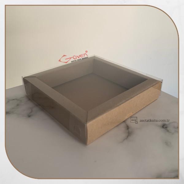 15x15x3 Altı Kraft Karton Üstü Asetat Duvarlı Kutu