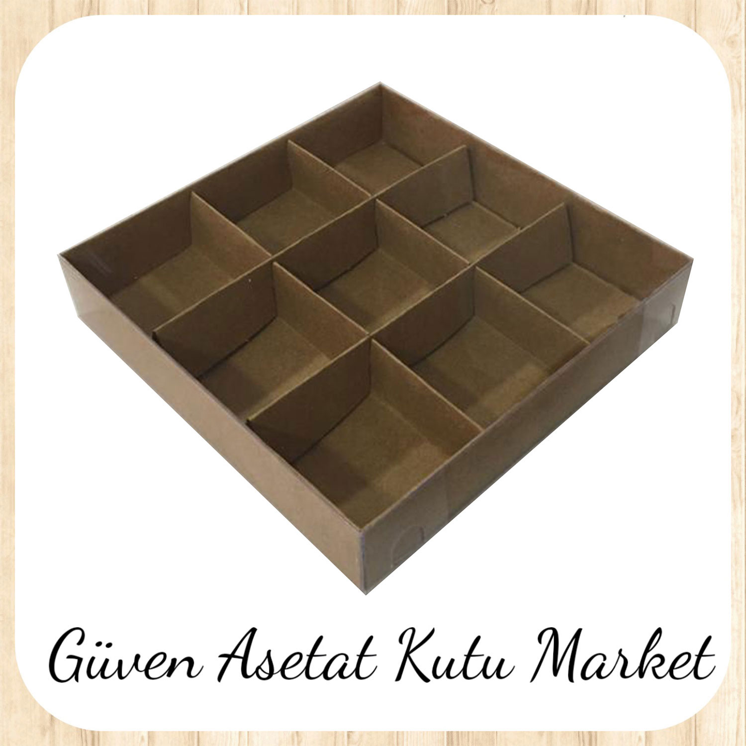[9 Bölmeli] 15x15x3 Altı Kraft Karton Üstü Asetat Kutu