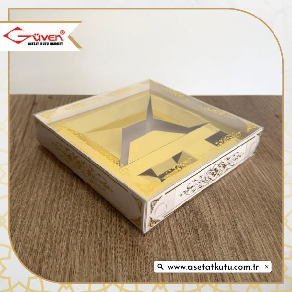 15x15x3 Gold Saray Desenli, Beyaz Karton Tabanlı Kutu [Gold Karton İçli]