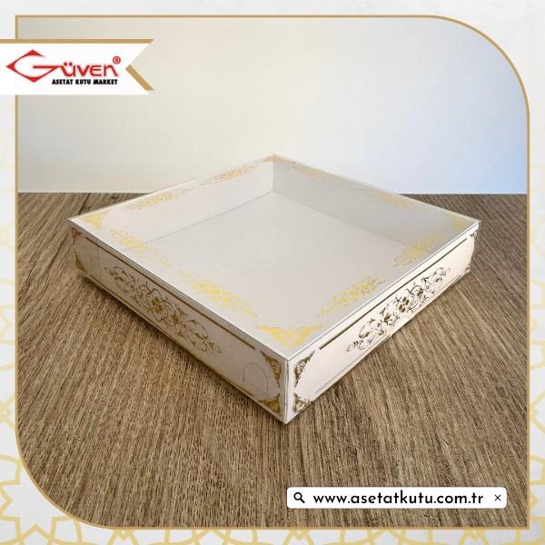 15x15x3 Gold Saray Desenli, Beyaz Karton Tabanlı Kutu