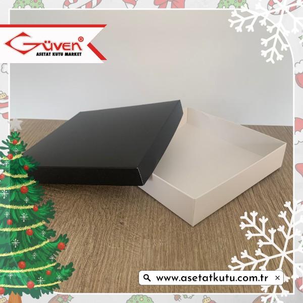 15x15x3 Tabanı Beyaz, Kapağı Siyah Karton Kutu