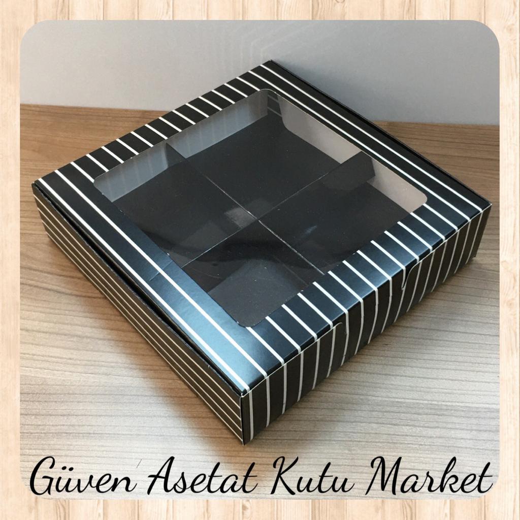 [4 Bölmeli] 15x15x5 Siyah Beyaz Çizgili Pencereli Karton Kutu