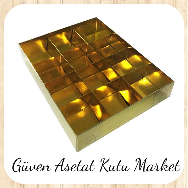 [12 Bölmeli] 15x20x3 Altı Gold Karton Üstü Asetat Kutu