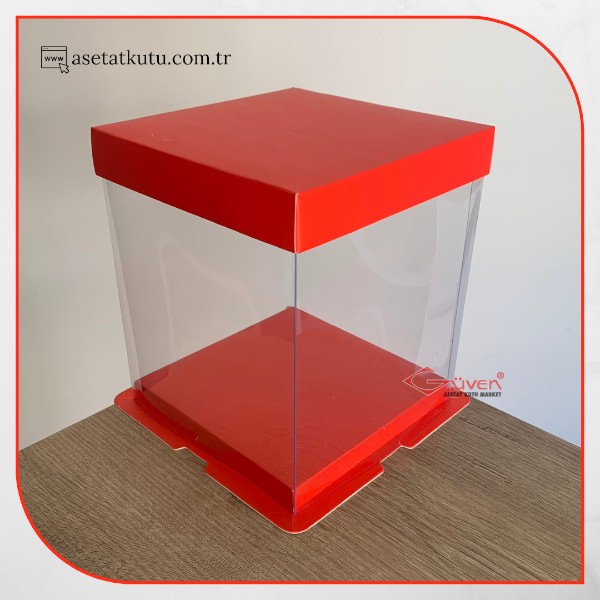 17x17x20 Kırmızı Karton ve Asetat Kutu (HM28)