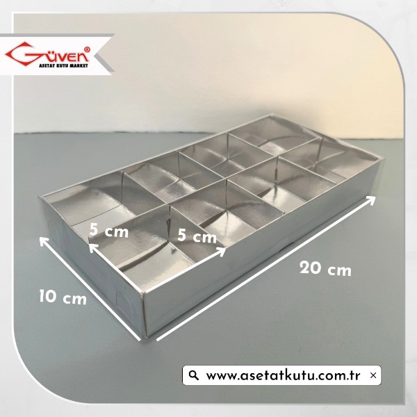 [8 Bölmeli] 20x10x3 Altı Gümüş Karton Üstü Asetat Kutu