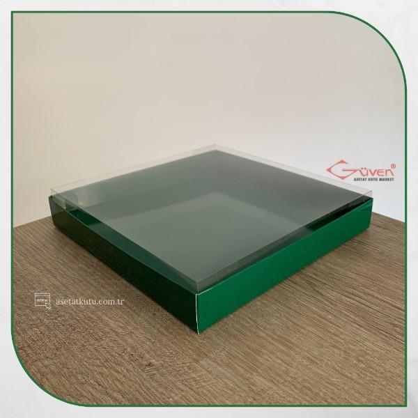 20x20x3.5 Altı Yeşil Karton Üstü Asetat Kutu