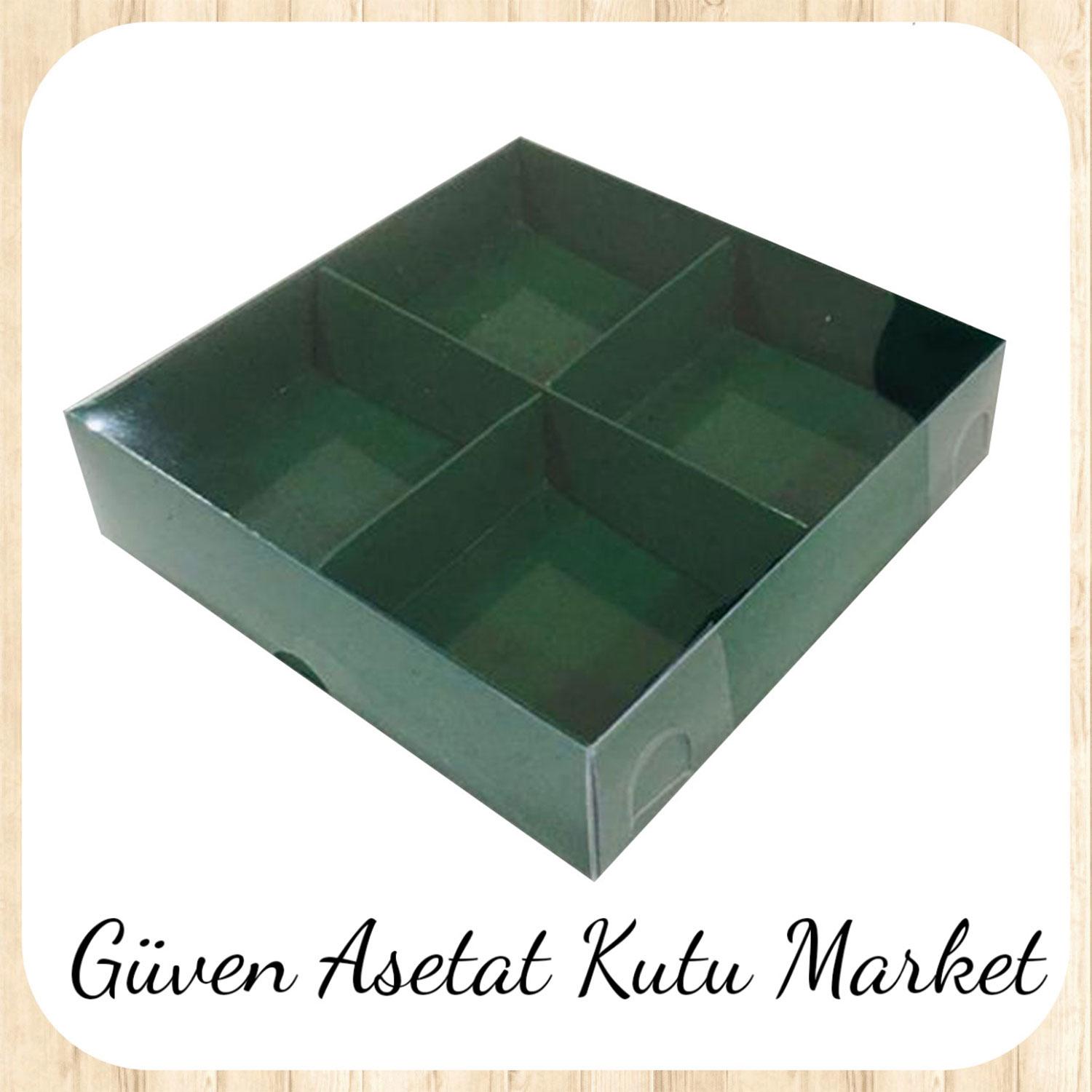 [4 Bölmeli] 20x20x3 Altı Yeşil Karton Üstü Asetat Kutu