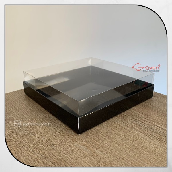 20x20x5 Altı Siyah Karton Üstü Asetat Kutu