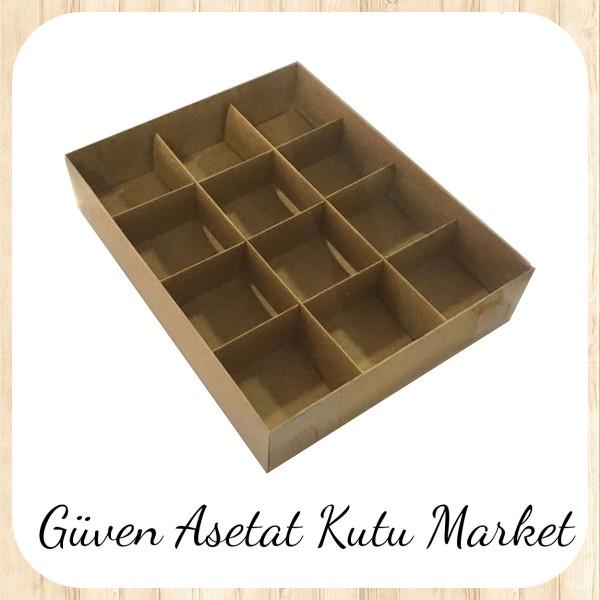 [12 Bölmeli] 20x25x5 Altı Kraft Karton Üstü Asetat Kutu