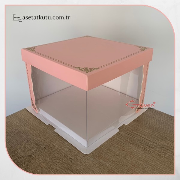 21.5x21.5x16 Pembe Yarı Karton Yarı Asetat Kutu (HM7)