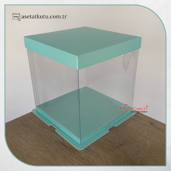 21.5x21.5x24 Mavi Karton ve Asetat Kutu (HM31)