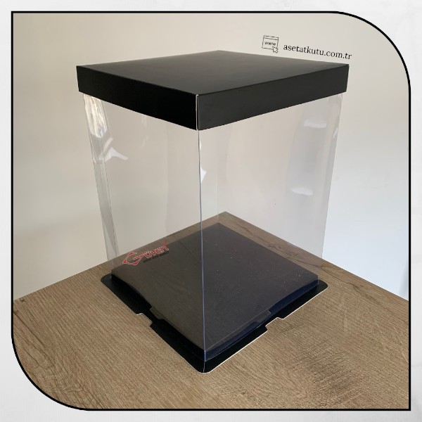 21.5x21.5x30 Siyah Karton ve Asetat Kutu (HM32)