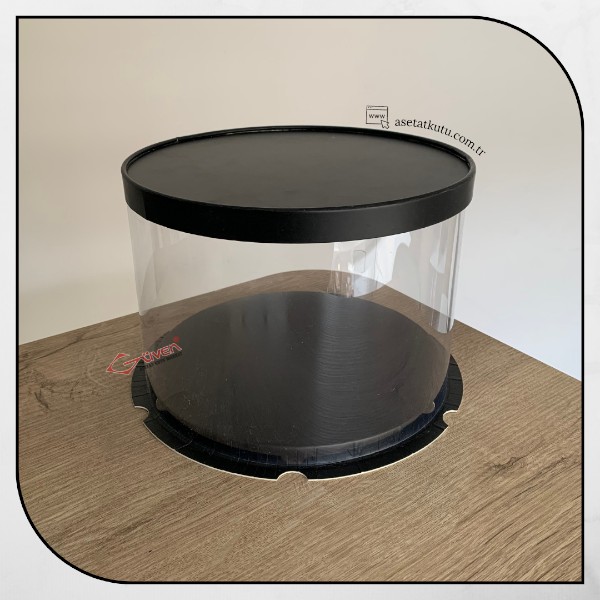 Çap 25 x Yükseklik 17 Siyah Silindir Asetat Kutu (HM56)