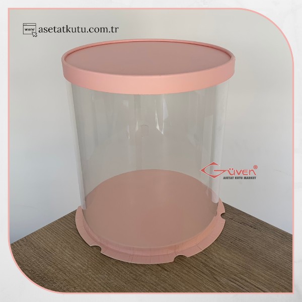 Çap 25 x Yükseklik 30 Pembe Silindir Asetat Kutu (HM58)