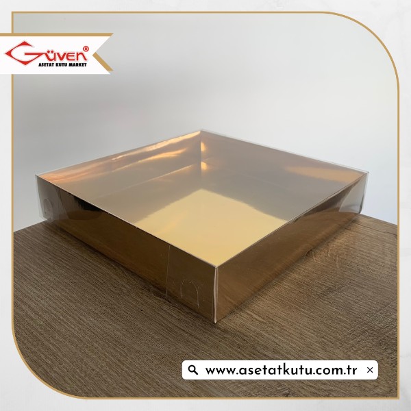 25x25x5 Altı Gold Metalize Karton Üstü Asetat Kutu