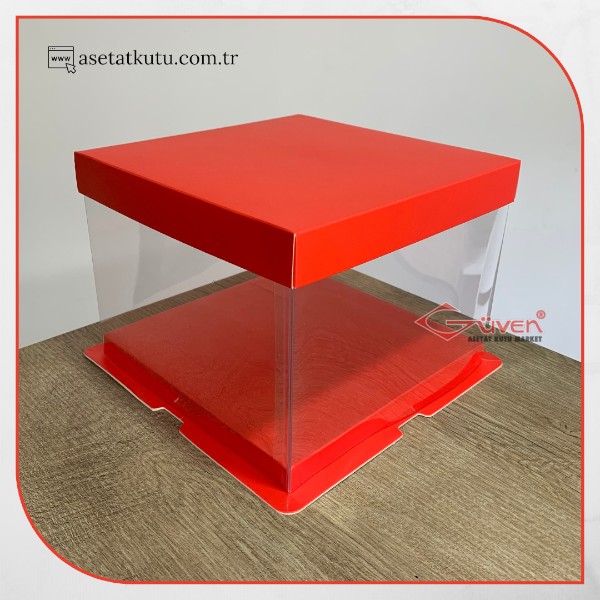 26x26x18 Kırmızı Karton ve Asetat Kutu (HM33)