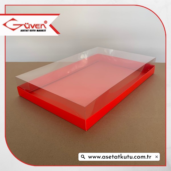 26x40x6 Altı İnce Kırmızı Karton Üstü Asetat Kutu