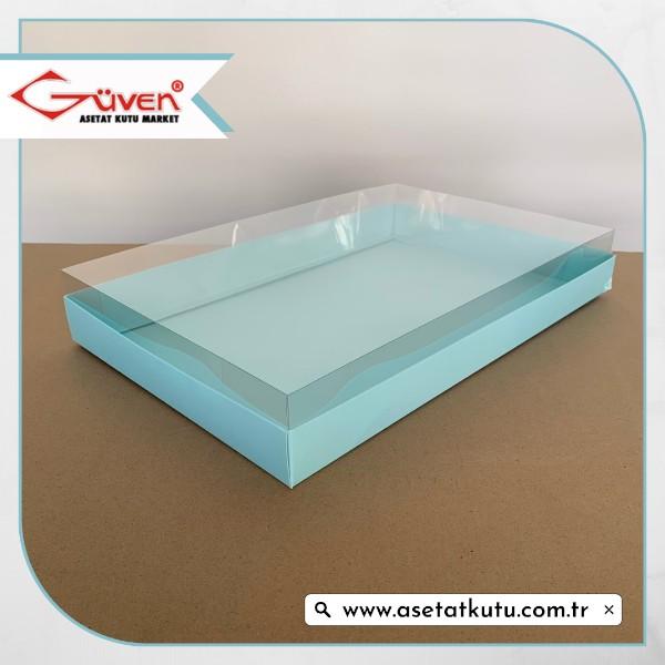 26x40x6 Altı İnce Mavi Karton Üstü Asetat Kutu