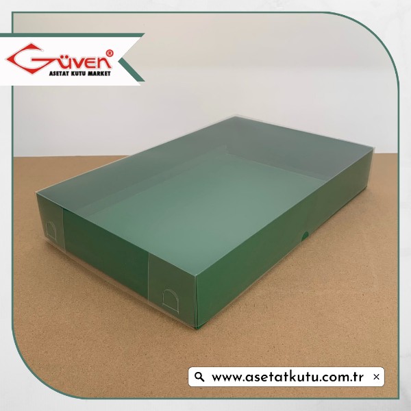 26x40x6.5 Altı Yeşil Karton Üstü Asetat Kutu