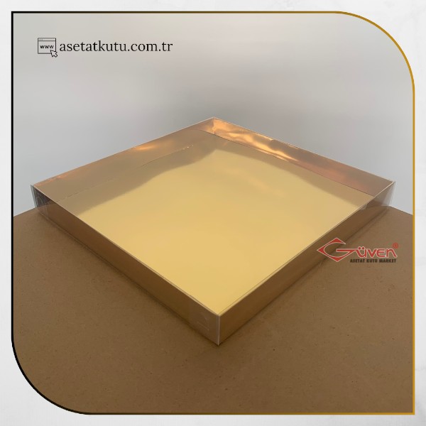 35x35x4 Altı Gold Metalize Karton Üstü Asetat Kutu