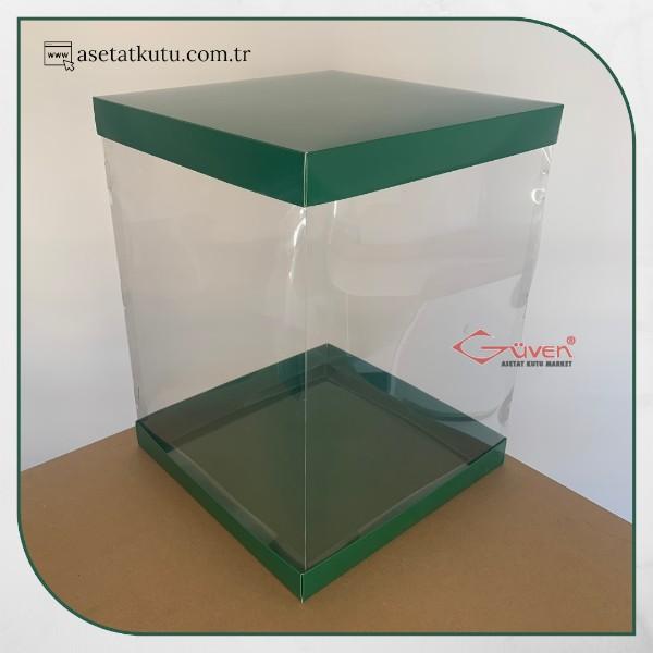 35x35x45 Altı Yeşil Karton Üstü Asetat Kutu