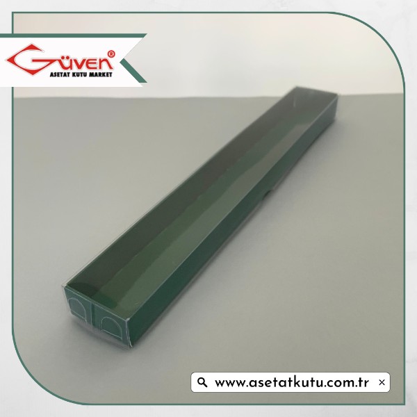3x20x1.5 Altı Yeşil Karton Üstü Asetat Kutu