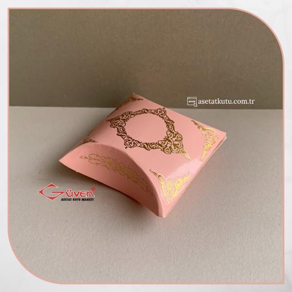 4.5x4.5x1.5 Pembe Üzeri Gold Saray Desenli Japon Yastığı Kutu
