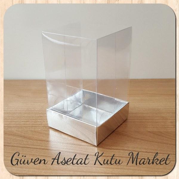6x6x10 Altı Gümüş Metalize Karton Üstü Asetat Kutu