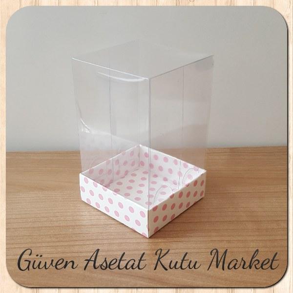 6x6x10 Altı Pembe Puantiyeli Karton Üstü Asetat Kutu