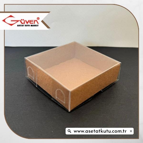 6x6x2.5 Altı Kraft Karton Üstü Asetat Kutu [Dıştan Kapanan]