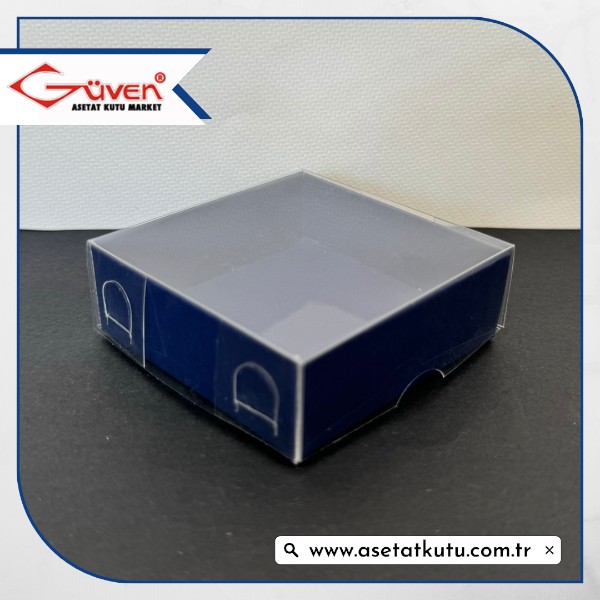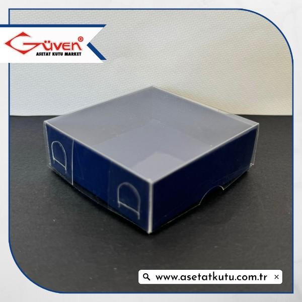 6x6x2.5 Altı Lacivert Karton Üstü Asetat Kutu [Dıştan Kapanan]