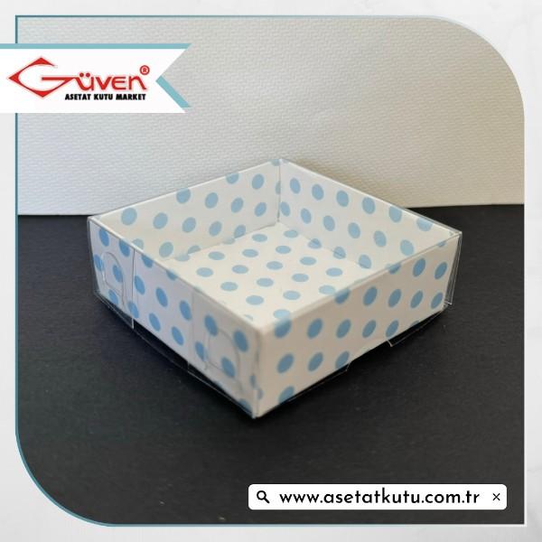 6x6x2.5 Altı Mavi Puantiyeli Karton Üstü Asetat Kutu [Dıştan Kapanan]