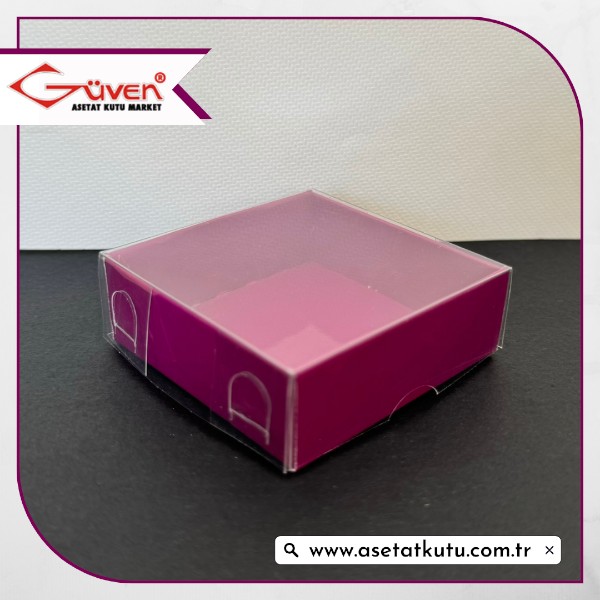 6x6x2.5 Altı Mor Karton Üstü Asetat Kutu [Dıştan Kapanan]