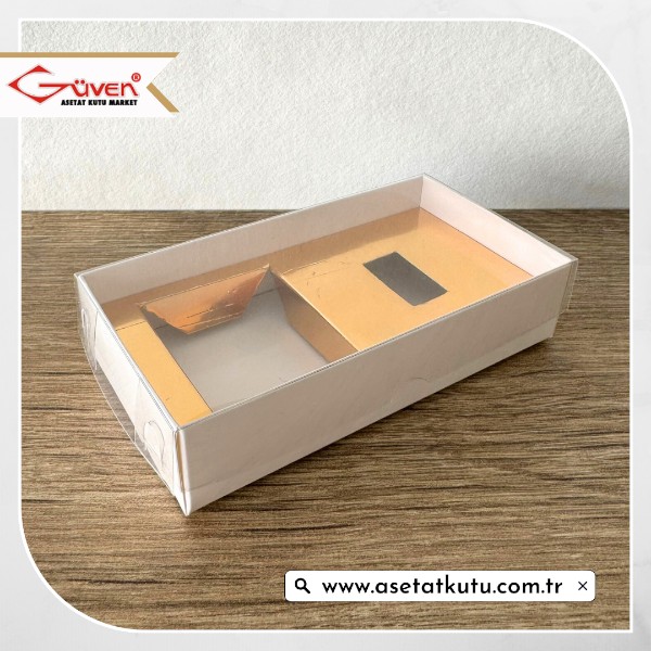 7x13x3 Gold İçli, Altı Beyaz Karton Üstü Asetat Kutu