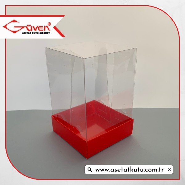 7x7x10 Altı Kırmızı Karton Üstü Asetat Kutu