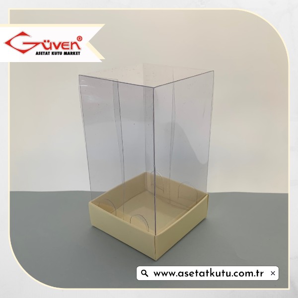 7x7x12 Altı Krem Karton Üstü Asetat Kutu