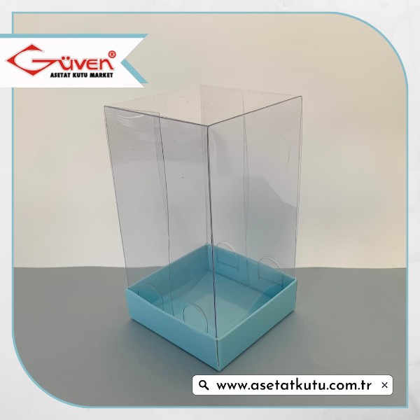 7x7x12 Altı Mavi Karton Üstü Asetat Kutu