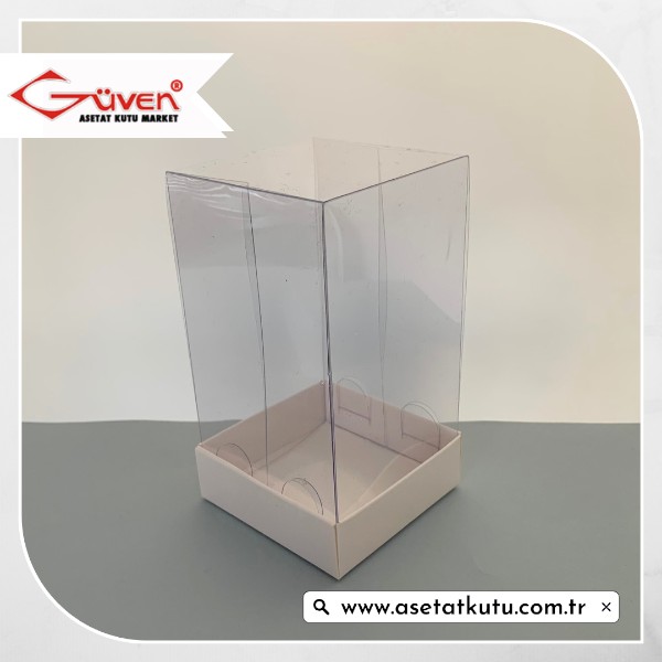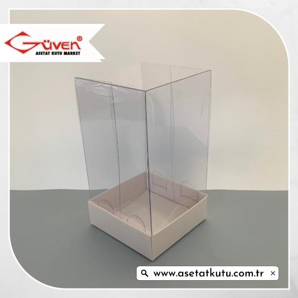 7x7x12 Altı Beyaz Karton Üstü Asetat Kutu