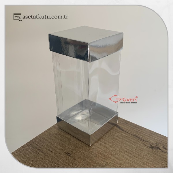 7x7x14 Gümüş Metalize Çift Taraflı Karton ve Asetat Kutu