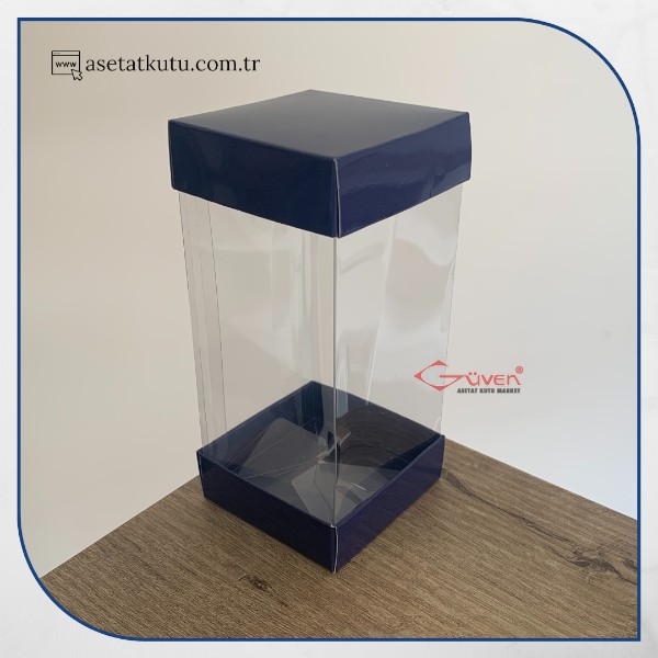 7x7x14 Lacivert Çift Taraflı Karton ve Asetat Kutu